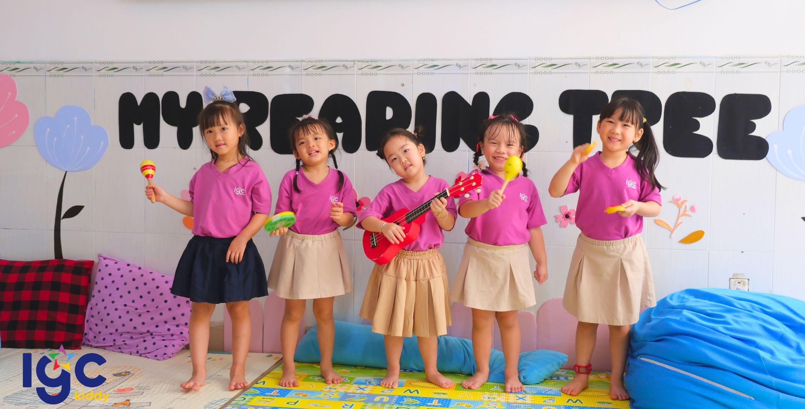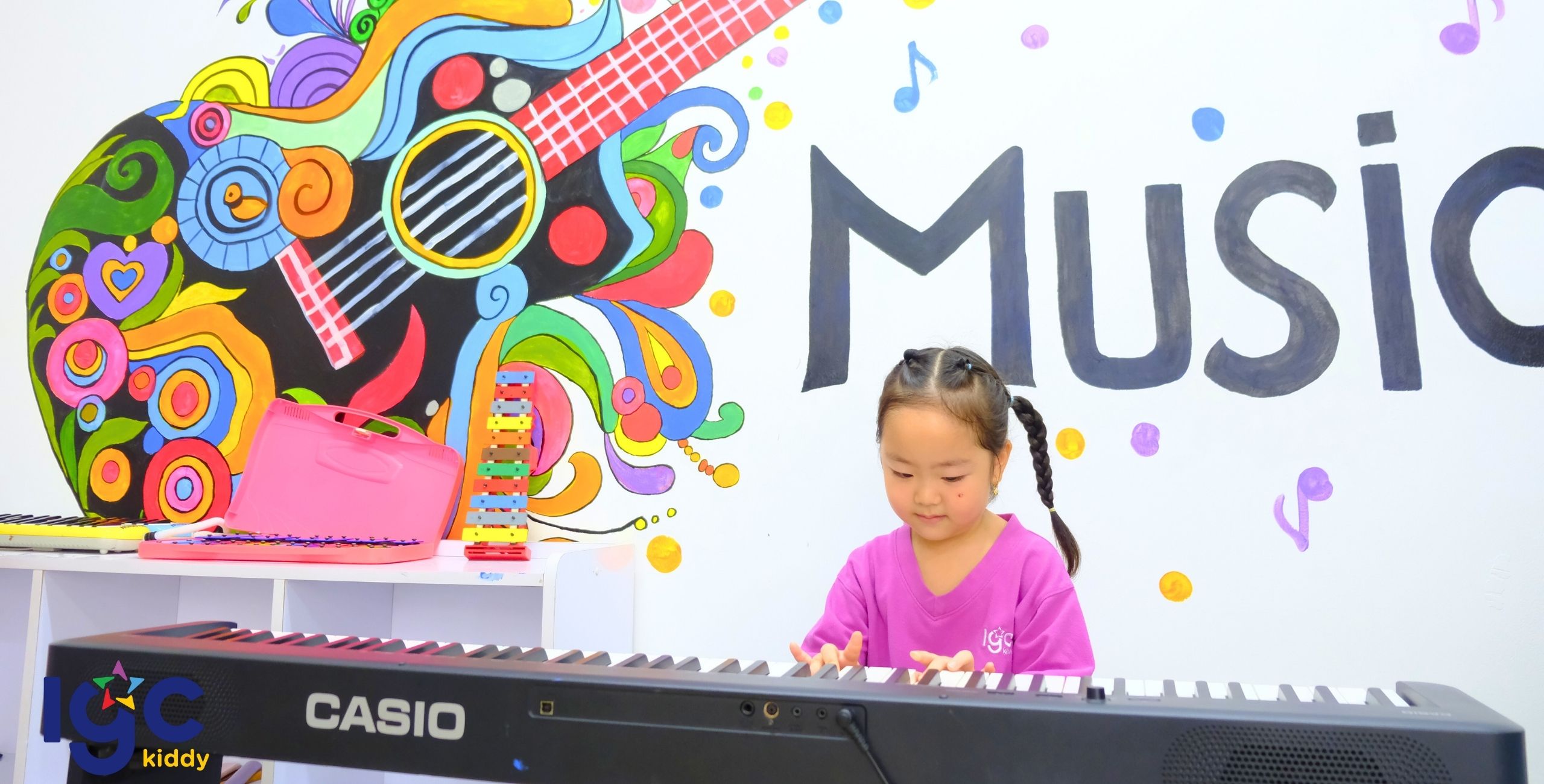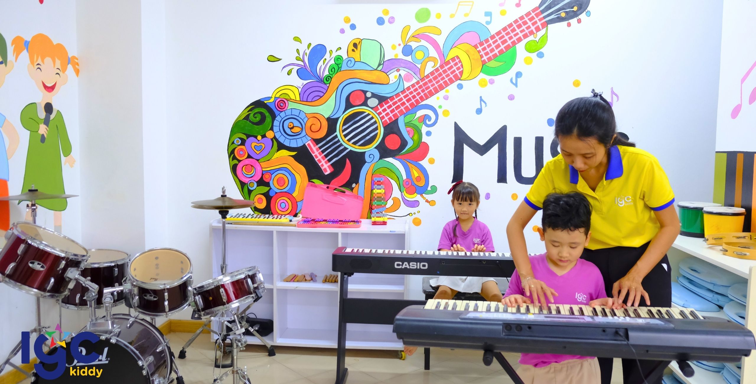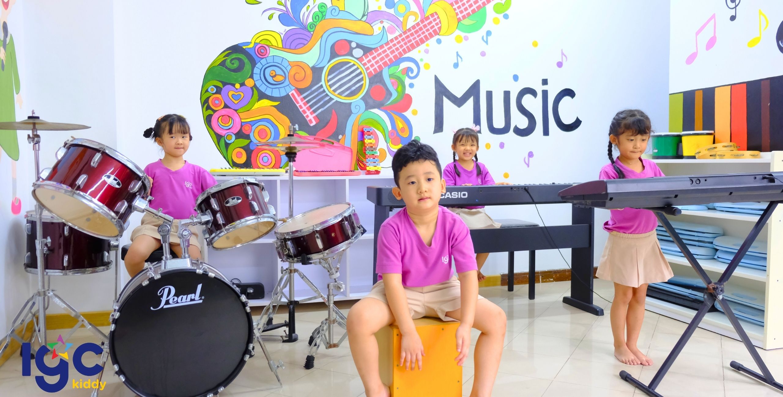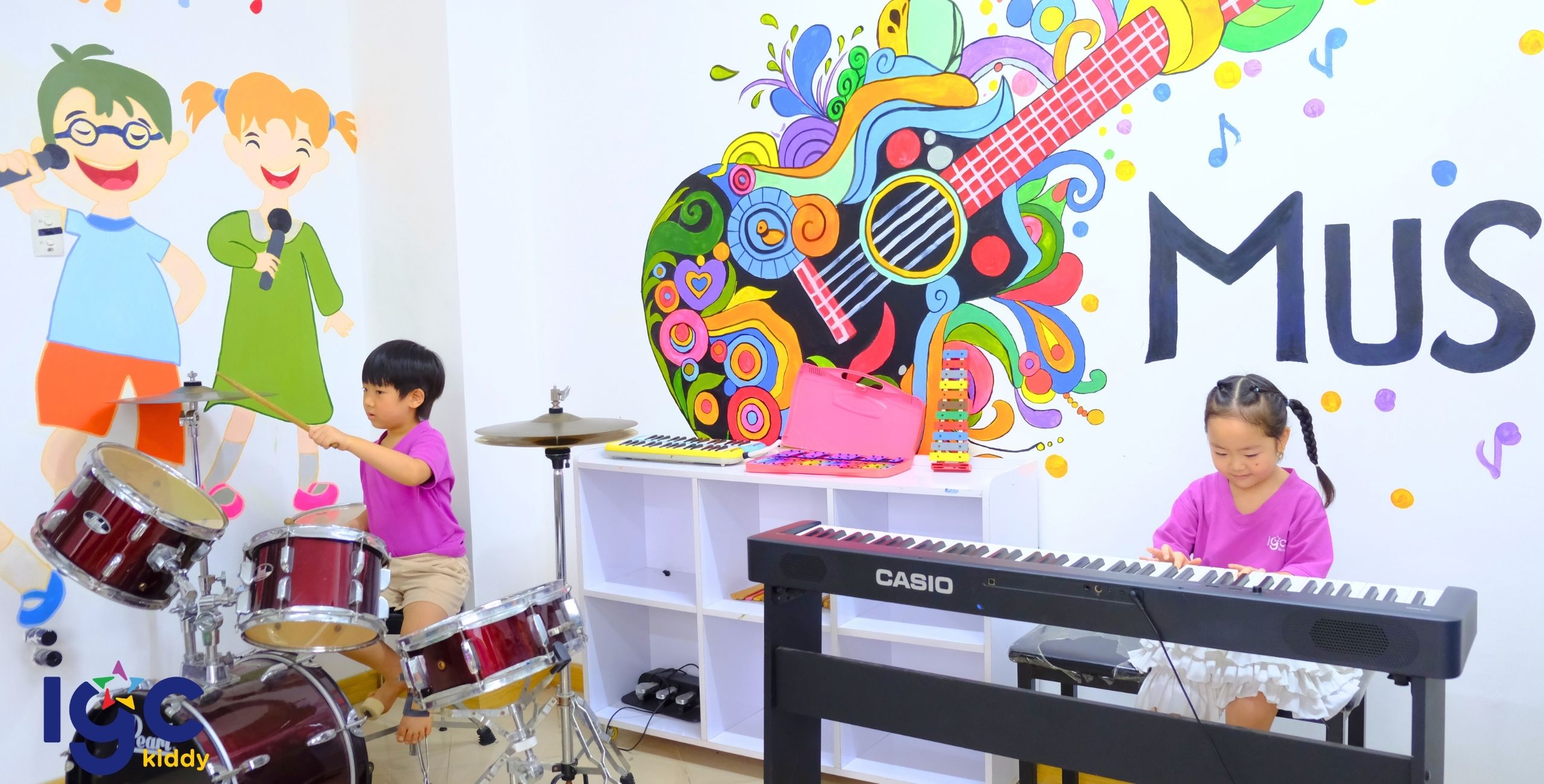 Âm nhạc là dòng sữa mát lành nuôi dưỡng tâm hồn của trẻ thơ. Bắt đầu buổi sáng an lành bằng 30 phút với chương trình cảm thụ âm nhạc buổi sáng là cách để trẻ khởi động ngày mới nhẹ nhàng và vui tươi. Trẻ học cách để lắng nghe và xướng âm theo nốt nhạc. Các tiết học âm nhạc chuyên sâu với các dụng cụ âm nhạc như: Piano, Tour Tambourine, Melodica, Bộ trống Pearl Midtown, Nino Orange Cajon… là cách đưa để trẻ đến với âm nhạc một cách tự nhiên. Đây cùng cũng là cơ hội để tìm kiếm những tài năng âm nhạc từ rất nhỏ.
