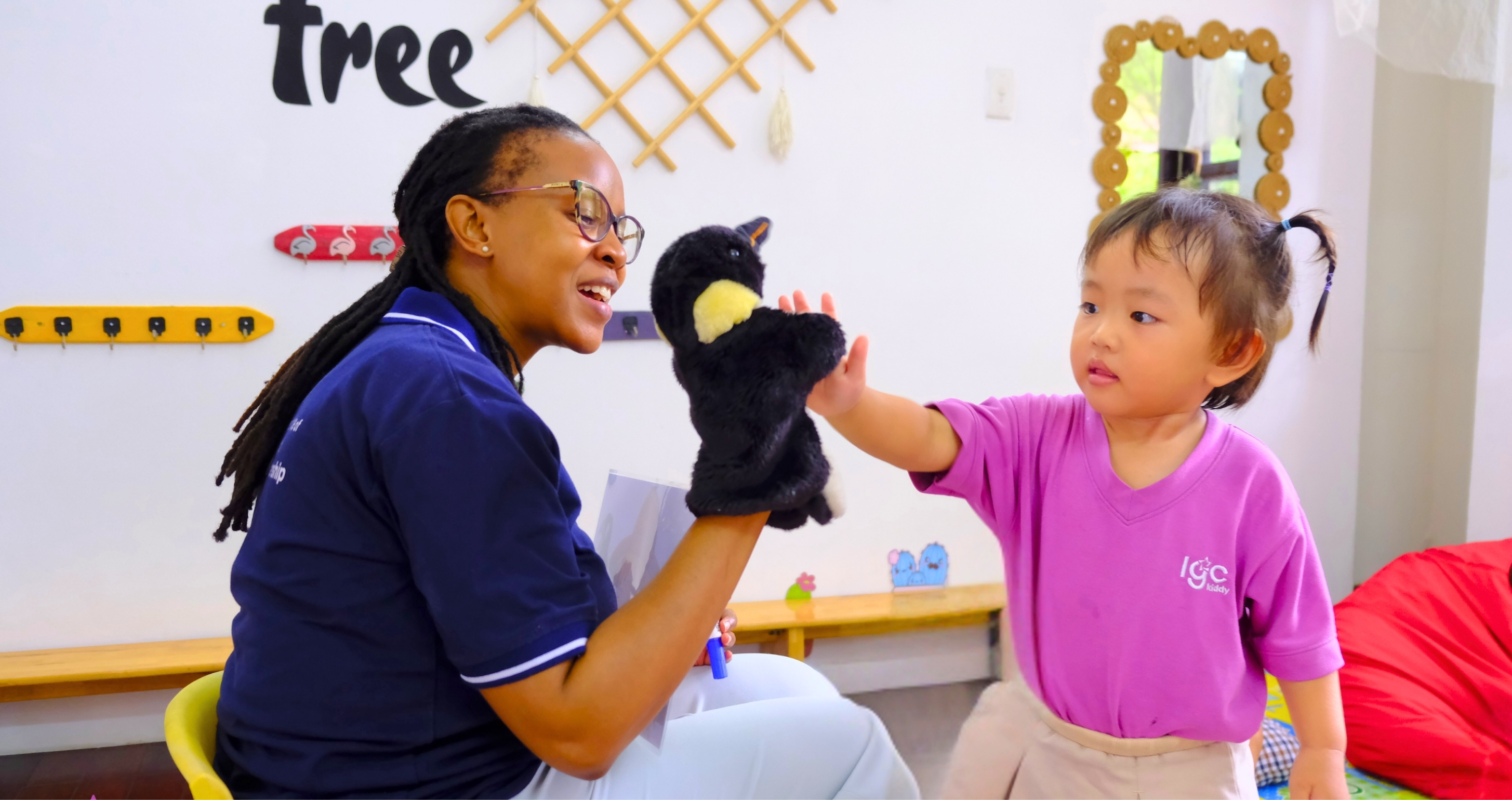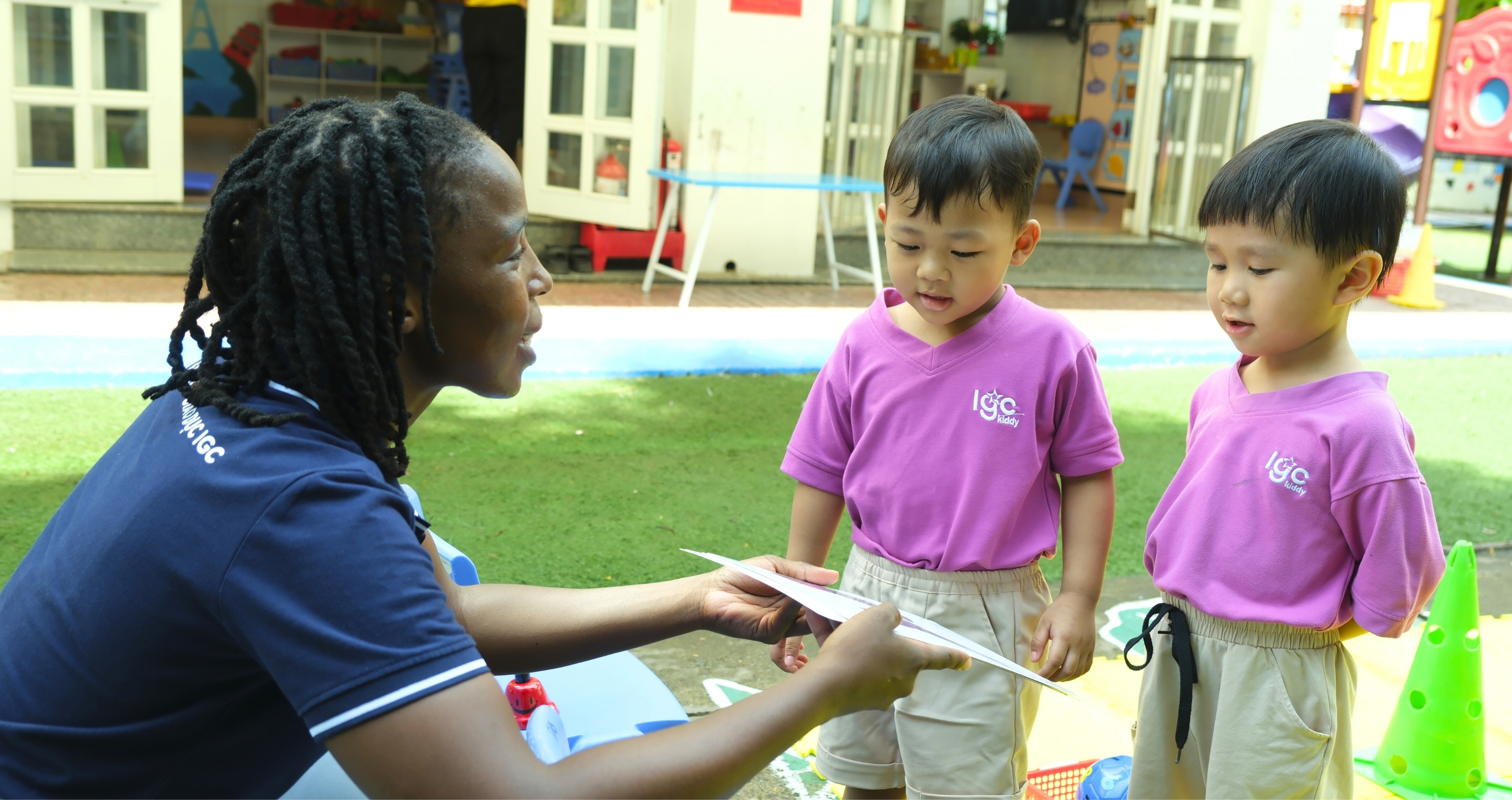 IGC Kiddy English là chương trình tiếng Anh ngoại khóa nhằm giúp trẻ tăng khả năng lặp lại chính xác, ghi nhớ từ vựng tốt, thể hiện sự hoạt bát trong sử dụng ngôn ngữ. Tiết học không chỉ trau dồi về kiến thức, từ vựng, mẫu câu mà các kỹ năng ngôn ngữ như phát âm, nghe, nói, phản xạ cũng được đặt ở vị trí ưu tiên hàng đầu nhằm tạo ra môi trường tốt nhất trong giai đoạn vàng phát triển của trẻ.