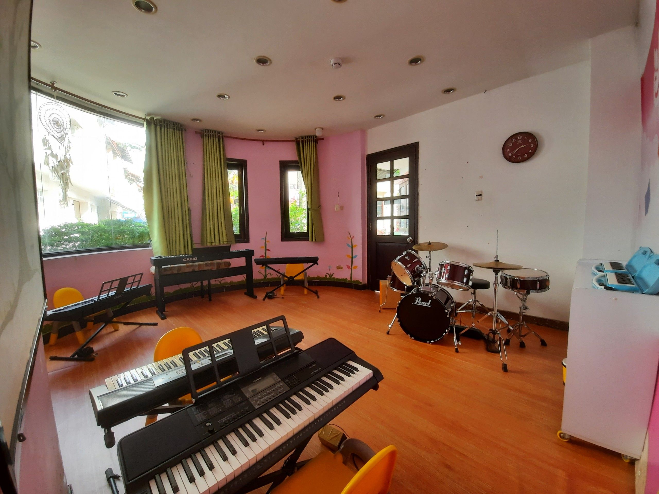 Được trang bị đa dạng các nhạc cụ như: Đàn Piano, Trống Pearl, Melodica… tạo cho trẻ không trải nghiệm thú vị và là nơi nuôi dưỡng, phát triển tiềm năng âm nhạc ở mỗi trẻ.