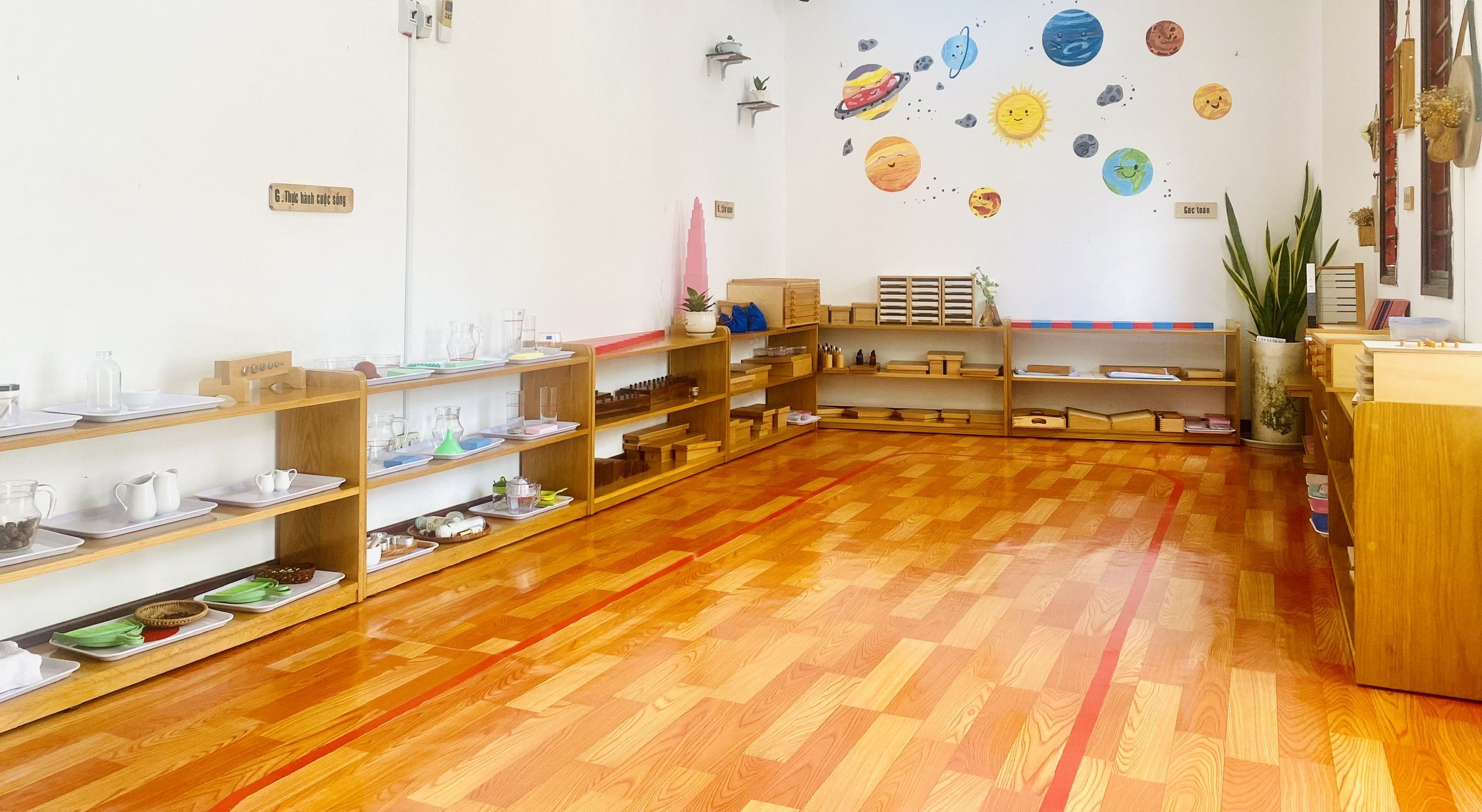 Phòng Montessori đảm bảo tiêu chuẩn về diện tích và giáo cụ học tập. Phòng học luôn rộng rãi, thông thoáng, thiết kế đúng chuẩn đảm bảo các tiêu chí khi trẻ tham gia hoạt động học tập.